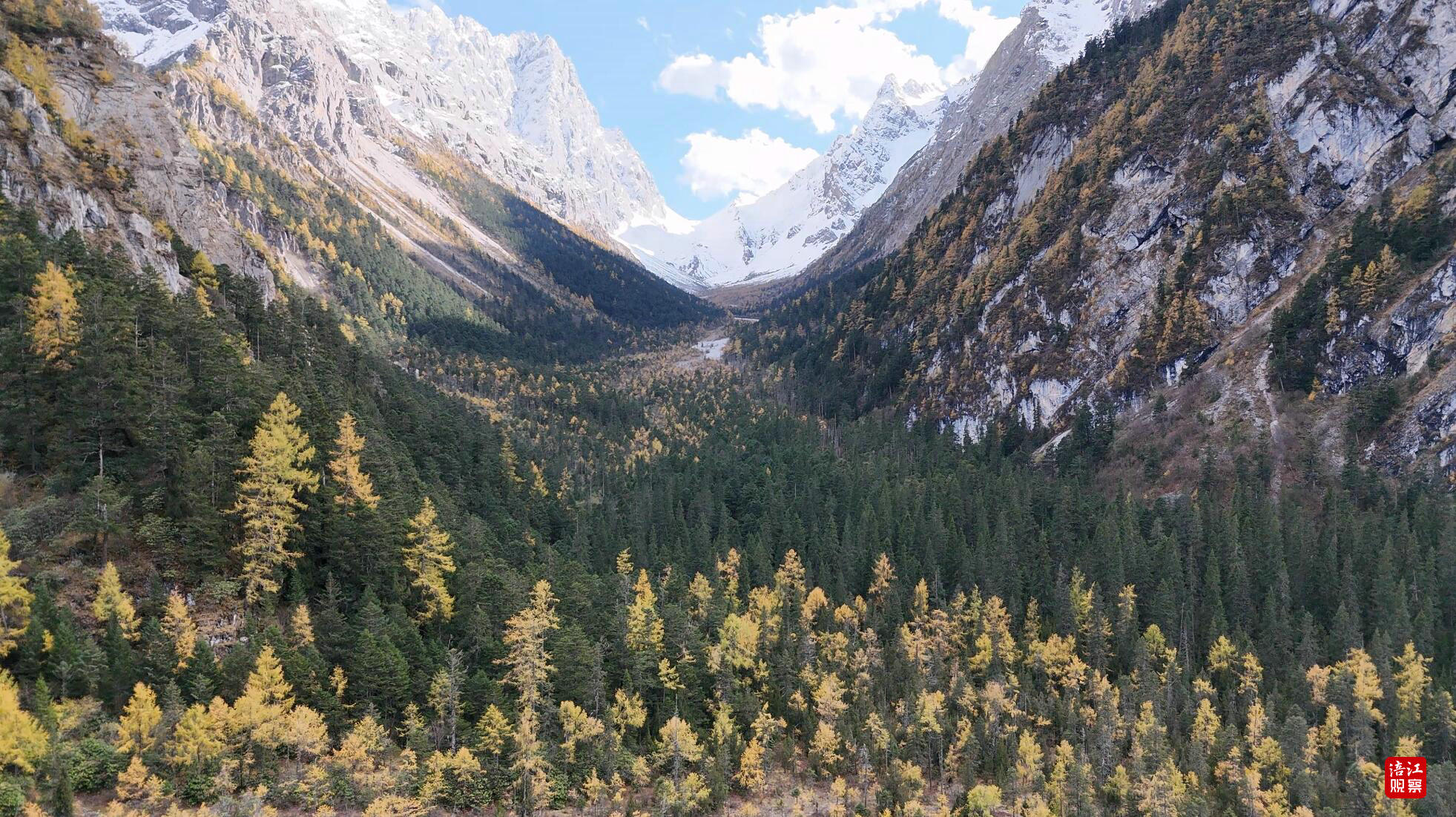 走進王朗片區的白沙溝流石灘,只見成片的四川紅杉褪去綠裝,換上金黃衣裳,在秋風中搖曳生姿。