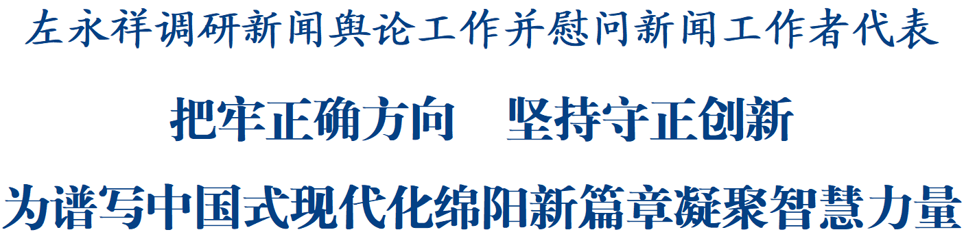 11月7日,在第26個中國記者節即將到來之際,省委常委、市委書記左永祥前往綿陽市新聞傳媒中心,調研新聞輿論工作,看望慰問一線新聞工作者代表。他強調,要深入學習貫徹習近平文化思想和習近平總書記關于新聞輿論工作的重要論述,全面落實黨中央和省委有關部署要求,把牢正確方向、堅持守正創新,不斷開創我市新聞輿論工作新局面,為譜寫中國式現代化綿陽新篇章凝聚智慧力量。