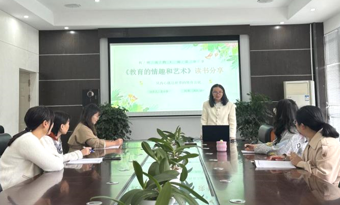 安老師分享如何將閱讀心得與教學(xué)實踐相結(jié)合。她從“教育的情趣”談起,認(rèn)為教育絕非枯燥的知識灌輸與管理規(guī)則的簡單執(zhí)行,而應(yīng)是充滿生命活力、情感溫度與探索樂趣的過程。她通過分享與學(xué)生日?;又械孽r活案例,向參會老師生動展示了如何在與學(xué)生的共處中尋找樂趣、培養(yǎng)情趣。安老師從“教育的藝術(shù)”方面指出:教育作為一門科學(xué),更是一門藝術(shù),教育藝術(shù)體現(xiàn)在敏銳的把握教育時機(jī)、有效的溝通表達(dá)以及營造良好的學(xué)習(xí)氛圍上。