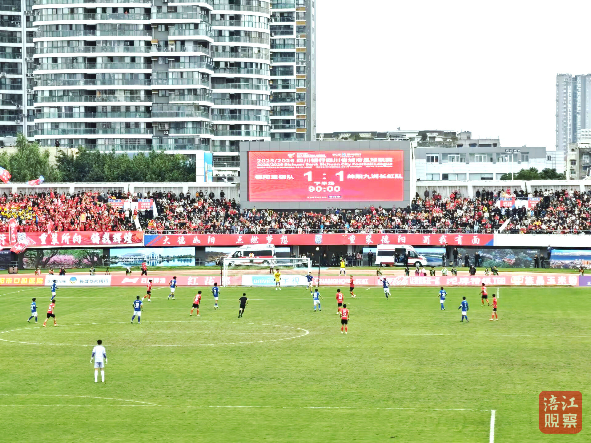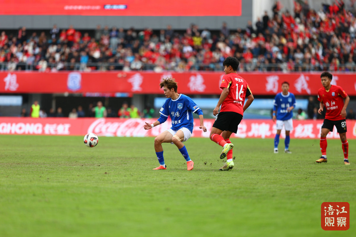 比賽第42分鐘,德陽(yáng)隊(duì)在禁區(qū)踢進(jìn)一球,將比分追平。