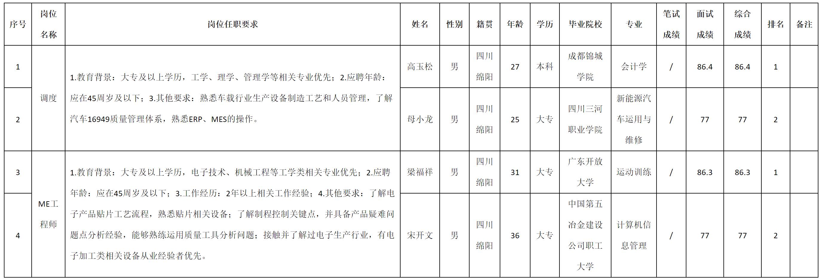 根據四川九州電子科技股份有限公司發(fā)布的招聘公告及招聘相關規(guī)定,現將測試成績予以公示。