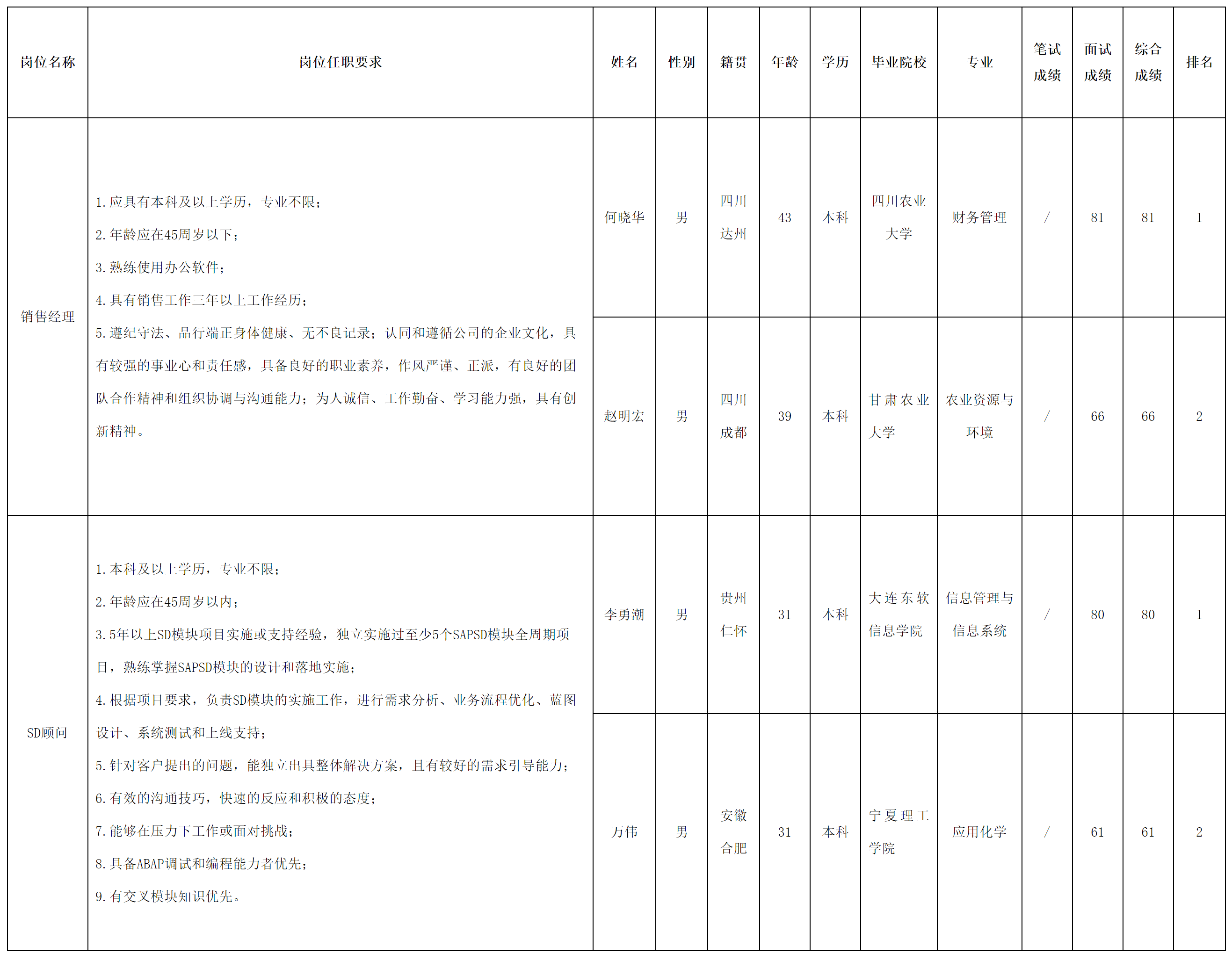 根據四川虹信軟件股份有限公司發布的招聘公告及招聘相關規定,現將測試成績予以公示。