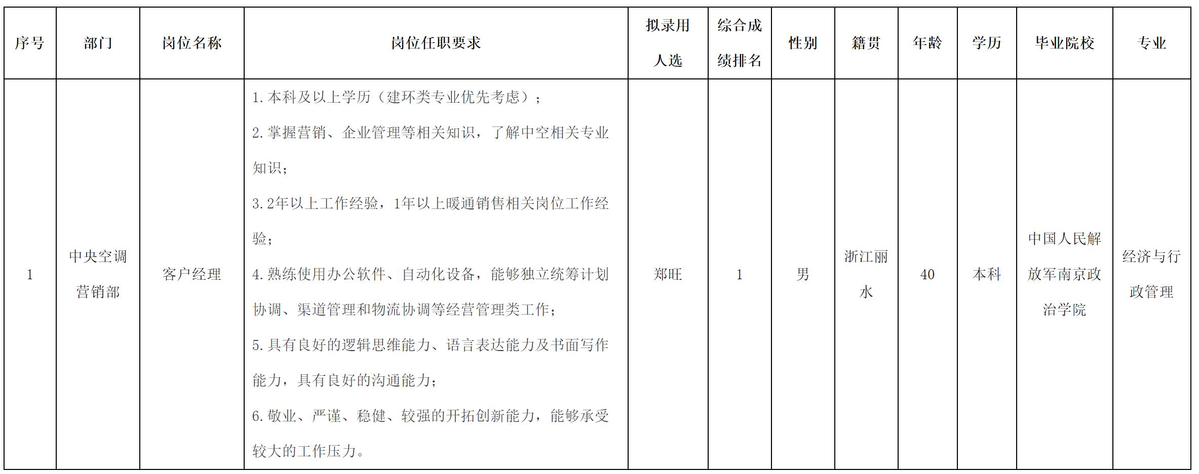 根據四川長虹空調有限公司發布的招聘公告及招聘相關規定,經面試,擬錄用鄭旺到長虹空調工作,現予以公示,具體情況如下: