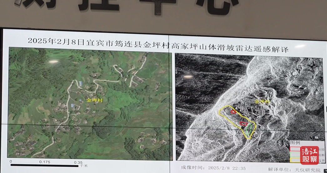 今年2月,宜賓筠連縣突發山體滑坡。危急時刻,“涪城一號”穿透云霧與夜色,第一時間傳回高分辨率SAR影像。通過AI算法快速處理,短短幾小時內,一張清晰地標定滑坡體與影響范圍的地表形變圖,便通過網絡直達搶險救援前線指揮部。