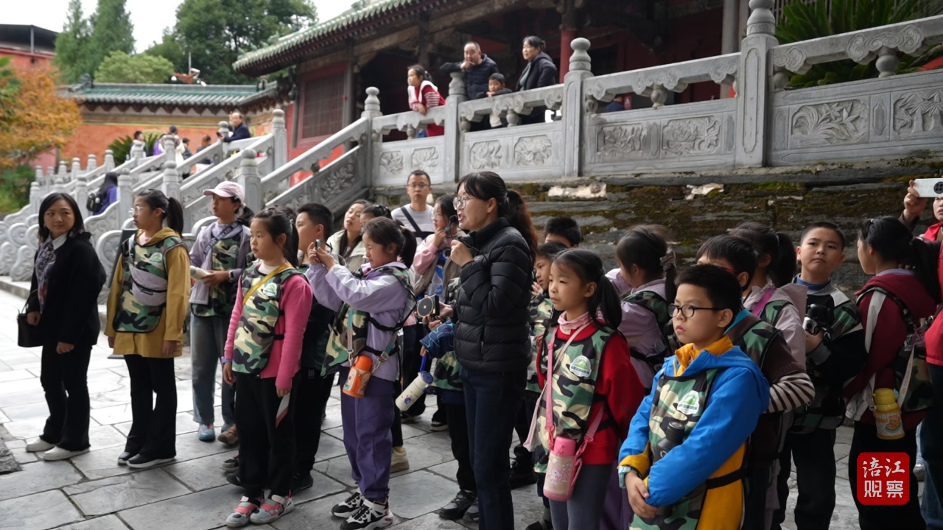 被譽為“深山故宮”的報恩寺,是秋假研學(xué)的核心熱門地。晨光里,這座保存完好的明代古建筑群人潮涌動,一波波親子游客駐足觀賞。不少家長特意選擇此時帶孩子前來,感受五百余年古寺的獨特魅力。