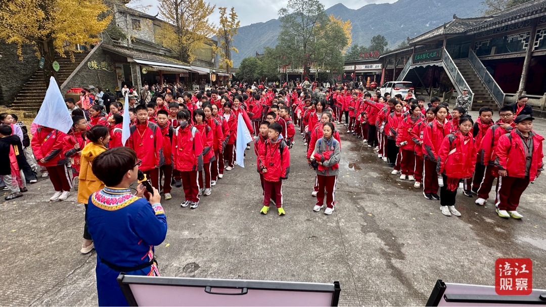 12日上午10時,景區(qū)入口處已人頭攢動,散客與研學(xué)團隊共同構(gòu)成一幅熱鬧的秋假出游畫卷。中午時分,來自成都市武侯區(qū)領(lǐng)川外國語學(xué)校的380名學(xué)生統(tǒng)一著裝,抵達(dá)景區(qū)開展以“探秘羌寨古韻·傳承非遺文脈”為主題的秋季研學(xué)實踐。