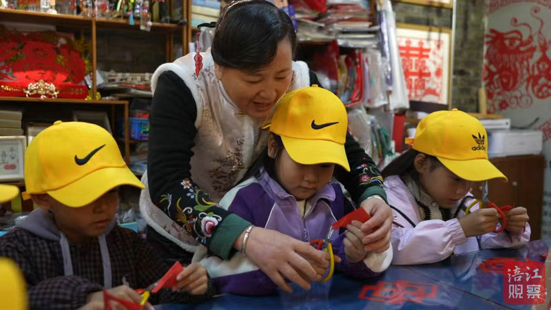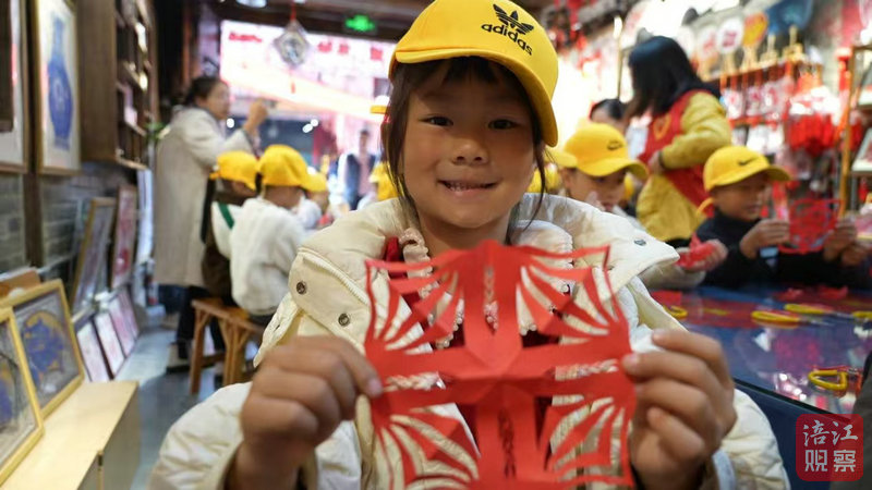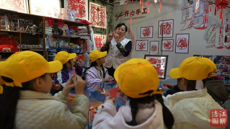 30名小學生來到三臺縣潼川古城非遺剪紙工坊。在老師的悉心指導下,一雙雙稚嫩的小手執起剪刀,專注地剪裁著手中的紅紙。
