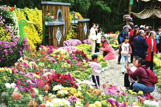 作為秋假期間的“寶藏打卡地”,富樂山本屆菊展以“一城秋色 菊香滿園”為主題,共展出10萬余株、近500個(gè)品種的菊花,精心打造出“一城秋色 菊香滿園”“禮贊和平”“富樂菊圃”等12組特色造型。11月12日,不少家長(zhǎng)專程帶著孩子登山賞菊,在馥郁菊香中觸摸傳統(tǒng)文化的脈搏。富樂山景區(qū)初步統(tǒng)計(jì),截至12日17時(shí),單日游客量4.5萬余人次,較前一日增長(zhǎng)約3萬人次,增長(zhǎng)比例為200%。