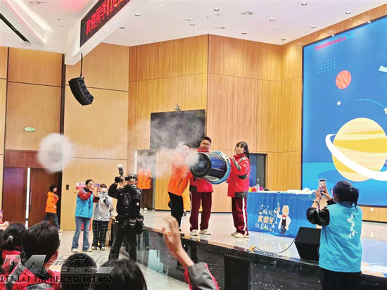 參加工業(yè)科技研學(xué)游的學(xué)生進(jìn)行科普實(shí)驗(yàn)。