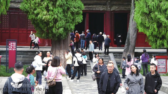 秋假期間,平武報恩寺迎來大量親子游客。 記者 任露瀟 攝