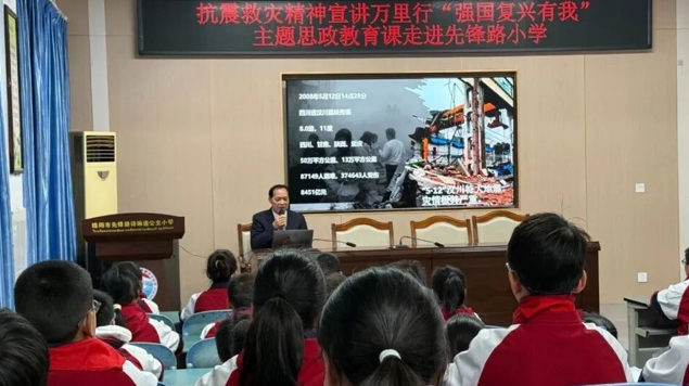 綿陽新聞網訊 近日,綿陽市先鋒路小學在班會課上開展了以“精神如炬照童心,強國復興擔使命”為主題的抗震救災精神宣講活動。本次活動特邀綿陽市抗震救災精神宣講團成員、四川省中共黨史學會理事景富國老師擔任主講,為全校師生帶來一場深刻而動人的精神洗禮。