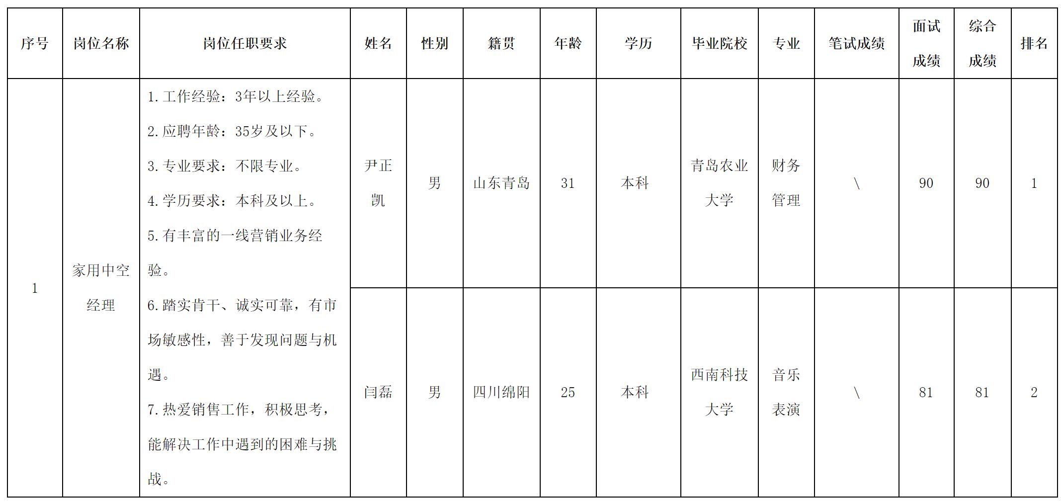 根據長虹·美菱中國區營銷總部發布的招聘公告及招聘相關規定,現將測試成績予以公示。