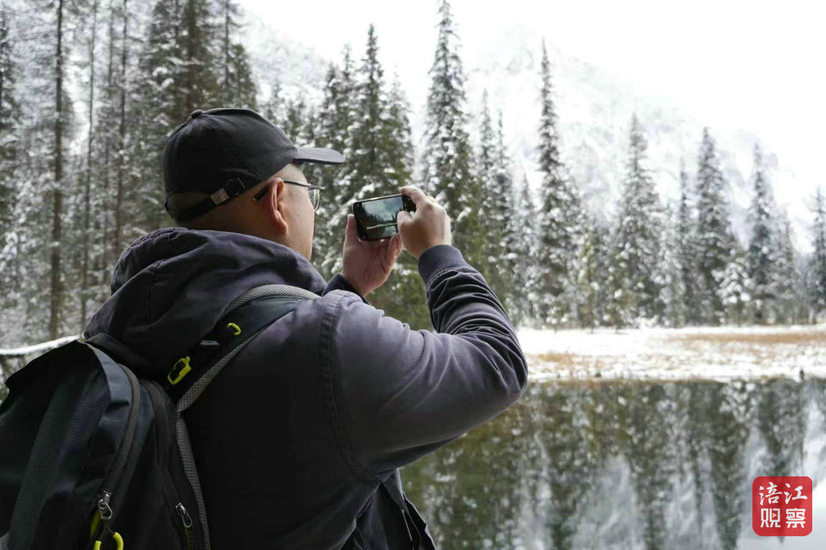 在大熊貓國家公園王朗片區,記者一行先后來到牧羊場和甘海子,經過前一天的降雪,王朗已然成為一片潔白的冰雪世界。
