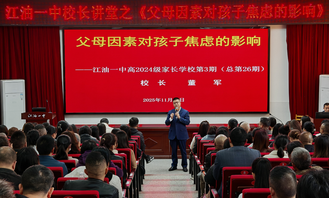 最后,該校黨委副書記、校長董軍老師開展了題為《父母因素對孩子焦慮的影響》的專題講座。他結合教育實例與心理學理論,剖析了家庭環境、親子溝通方式對孩子情緒狀態的影響,并提出“以支持為根基、理解為核心、信任為橋梁”的協作理念。他呼吁家長:“對孩子多一份耐心,因為每一次等待都是成長的伏筆;對學校多一份信任,因為每一份支持都是教育的力量”。同時,董軍還就預防校園欺凌和家長進行了溝通交流。