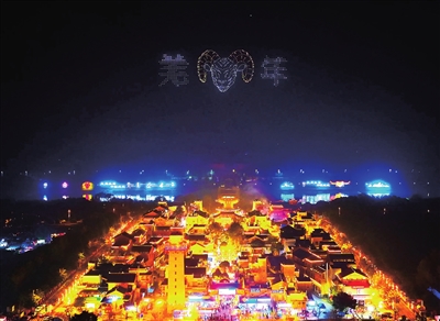 千架無人機組成“羌年”圖案 。北川融媒供圖