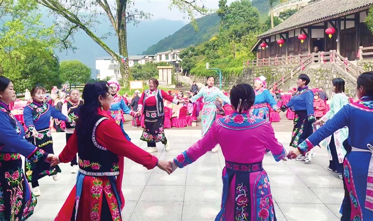 走進鑫羌民宿,老板陳繼春剛收拾完房間。“2023年我把老房子改造成民宿,每逢節假日都會迎來客流高峰。”看著院里熙熙攘攘的游客,她眼角泛起笑意。順著她手指的方向望去,嶄新的柏油路蜿蜒而上,繪著羌族圖樣的民居錯落有致,過往游客絡繹不絕。