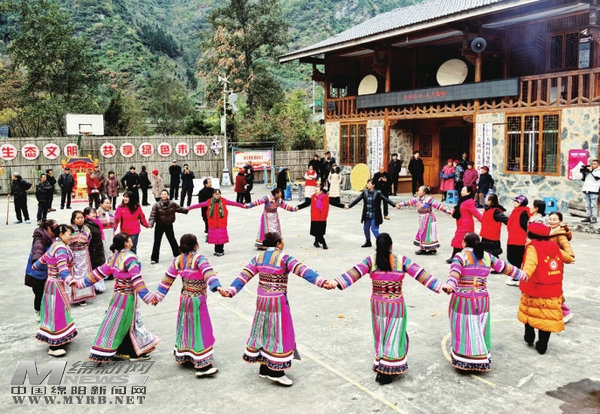 木皮藏族鄉關壩村村民跳起歡樂的圓圓舞。 胡宇 攝