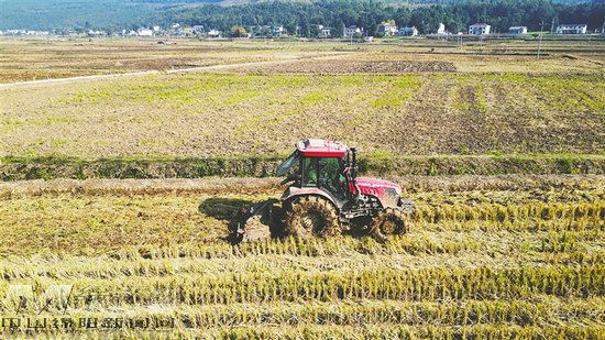 仙鶴鎮石龍村冬小麥播種現場。記者 周鈺 攝