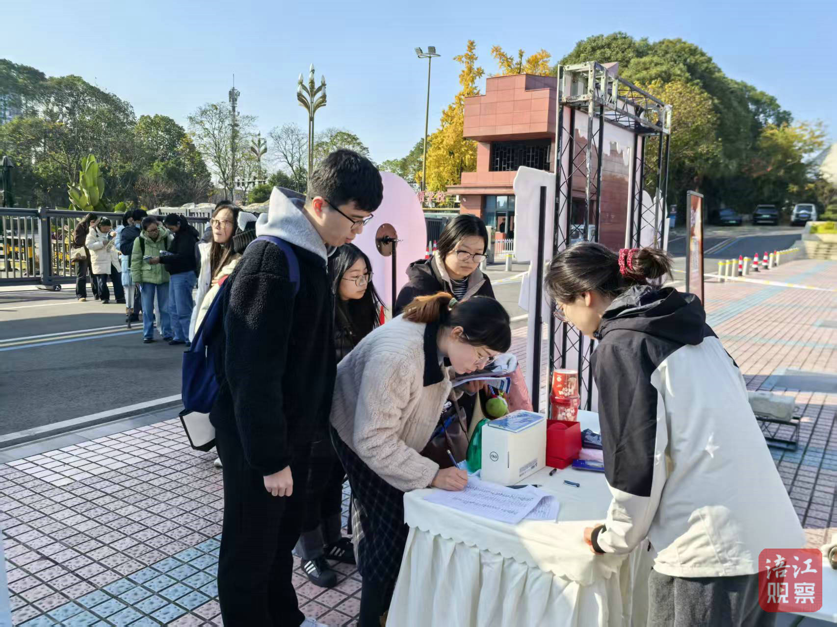 現場,拱門展架醒目矗立,“沾點‘涪’氣,成功上岸”等祝福手牌備受考生青睞,大家爭相與之合影。下載注冊涪江觀察客戶端的隊伍排起小長龍,考生們迫不及待排隊參與轉盤抽獎。