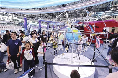 2025年 9月28日,在第十三屆中國(綿陽)科博會上,觀眾參觀北斗衛星導航系統模型。視覺綿陽資料圖片