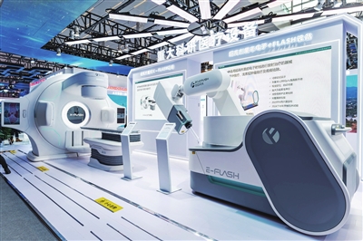 第十三屆科博會上,長虹展區展出的e-Flash放射治療設備和X-Flash放射治療設備。視覺綿陽資料圖片