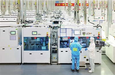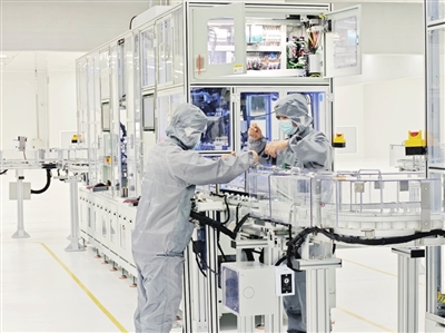 安州高新區(qū)炘皓新能源,太陽(yáng)能光伏電池片生產(chǎn)車間?!∫曈X(jué)綿陽(yáng)資料圖片