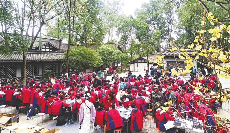 綿陽新聞網訊 近日,位于江油青蓮鎮的李白故居迎來一群群身著紅色校服的學生。當天,來自德陽外國語學校的600余名初中生在這里開展了“青睞綿陽·詩意江油”李白文化主題實景研學活動。