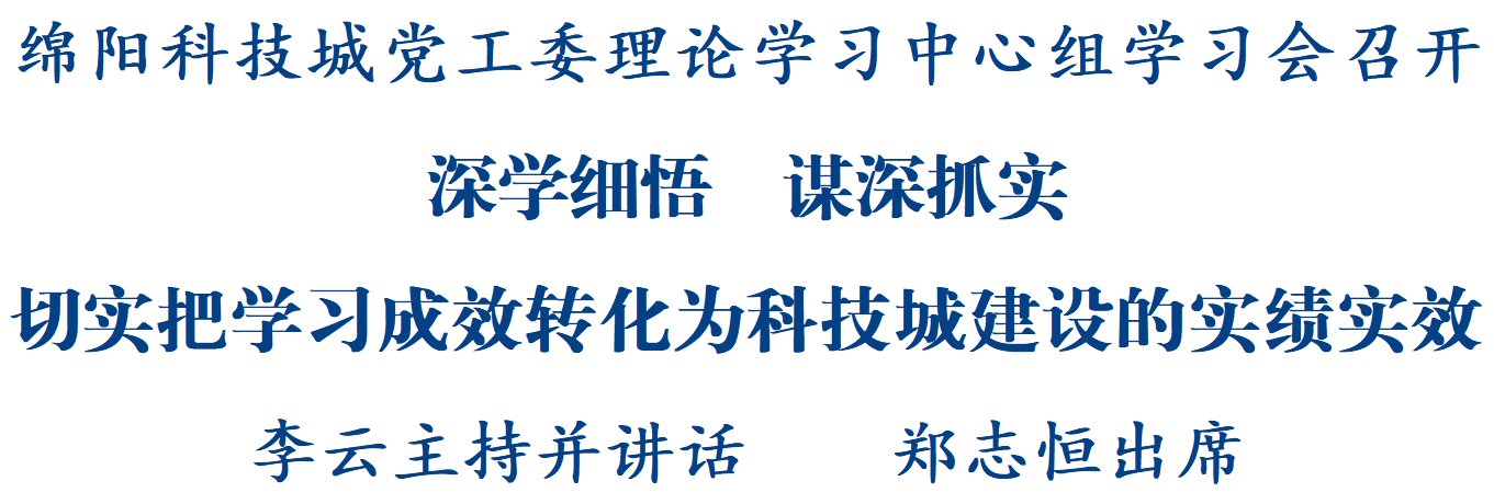 綿陽(yáng)新聞網(wǎng)訊 12月16日,綿陽(yáng)科技城黨工委理論學(xué)習(xí)中心組學(xué)習(xí)會(huì)召開,集中學(xué)習(xí)黨的二十屆四中全會(huì)、省委十二屆八次全會(huì)和市委八屆十一次全會(huì)精神。市委副書記、市長(zhǎng)、科技城黨工委書記李云主持并講話。