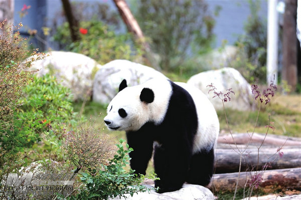 北川大熊貓動植物園里的大熊貓“升誼”。 記者 胥江 攝