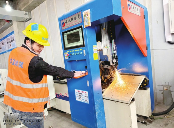 構件加工區,工人操控數控三維激光切管機。 記者 鄧勇 攝