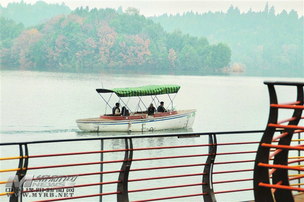 泛舟仙海觀美景。記者 胥江 攝