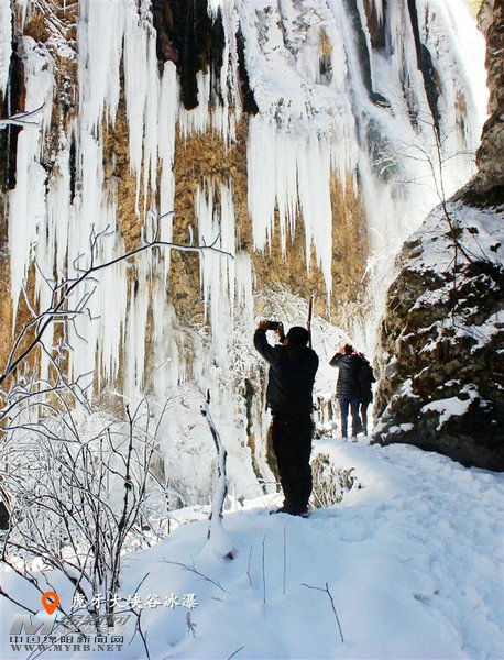 虎牙峽谷掛冰瀑。記者 李春梅 攝