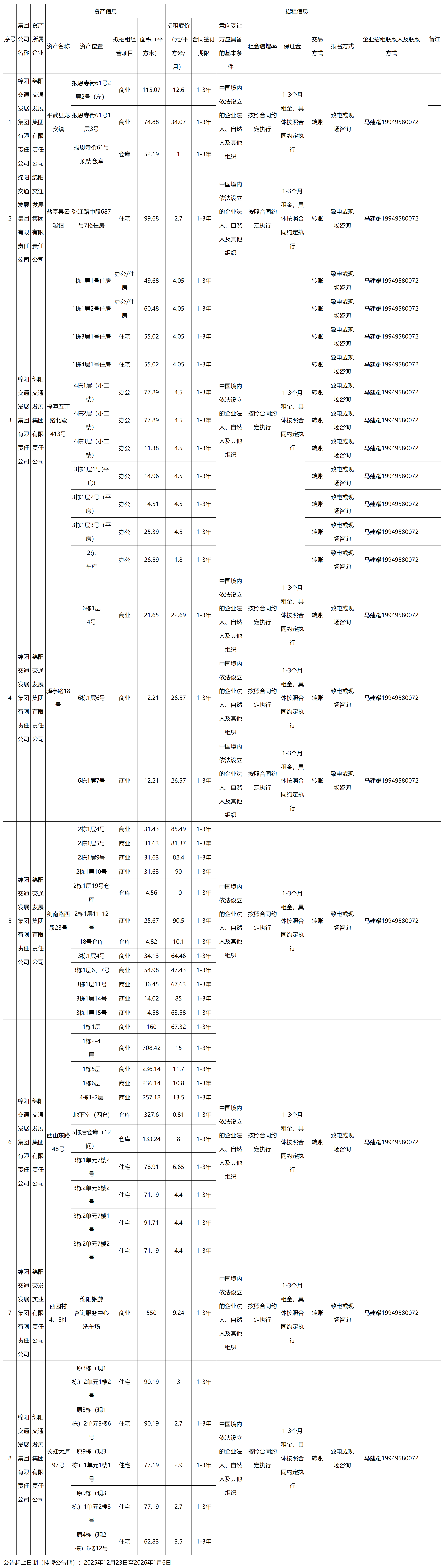 綿陽交發實業有限責任公司綿陽市區內外部分資產招租公告