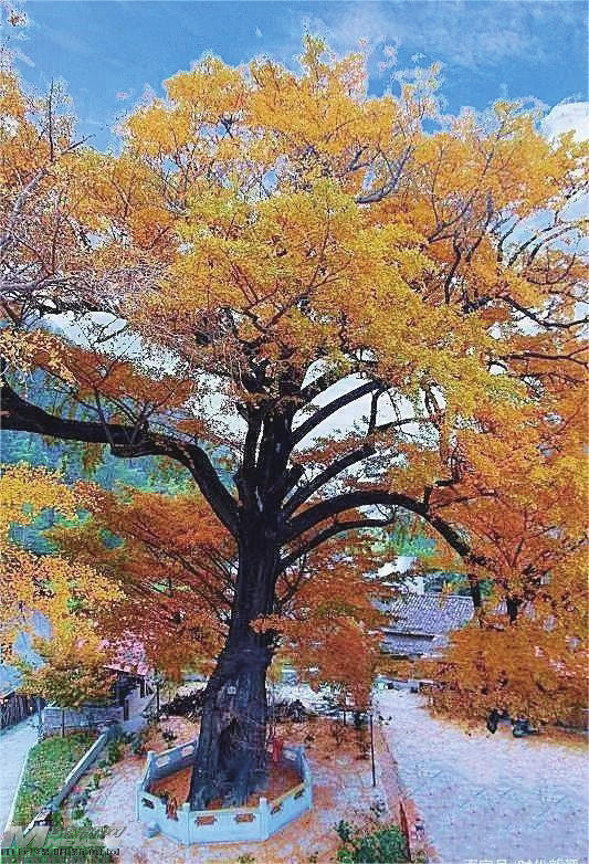 江油市雁門鎮云鑼山村的銀杏樹,源于南北朝時期,樹齡達1600余年,樹高23米、胸徑2.6米,冠幅20多米,氣勢恢宏。在漫長歲月里,它不幸遭雷電擊中,樹干被燒空成大窟窿,卻在當地鄉親悉心照料下劫后重生,奇跡般復活,頑強延續著生命的傳奇。