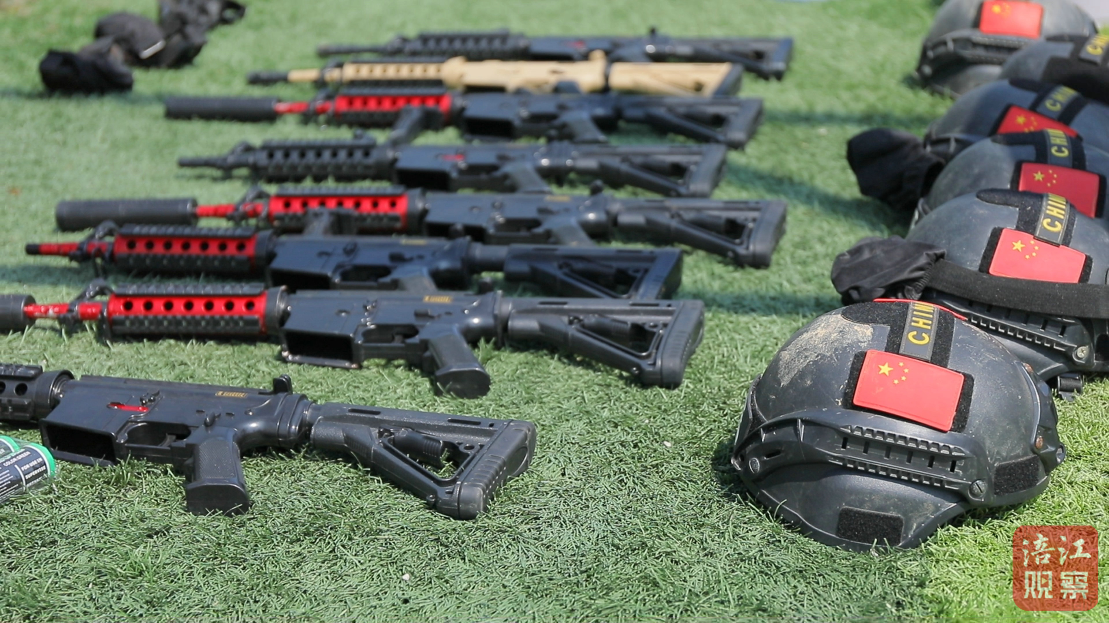 在迷彩涂裝的訓練樓頂端,孩子們體驗了繩降;在一幕幕煙塵滾滾的“戰場”中,孩子們又饒有興趣地玩起了CS模擬對抗戰。