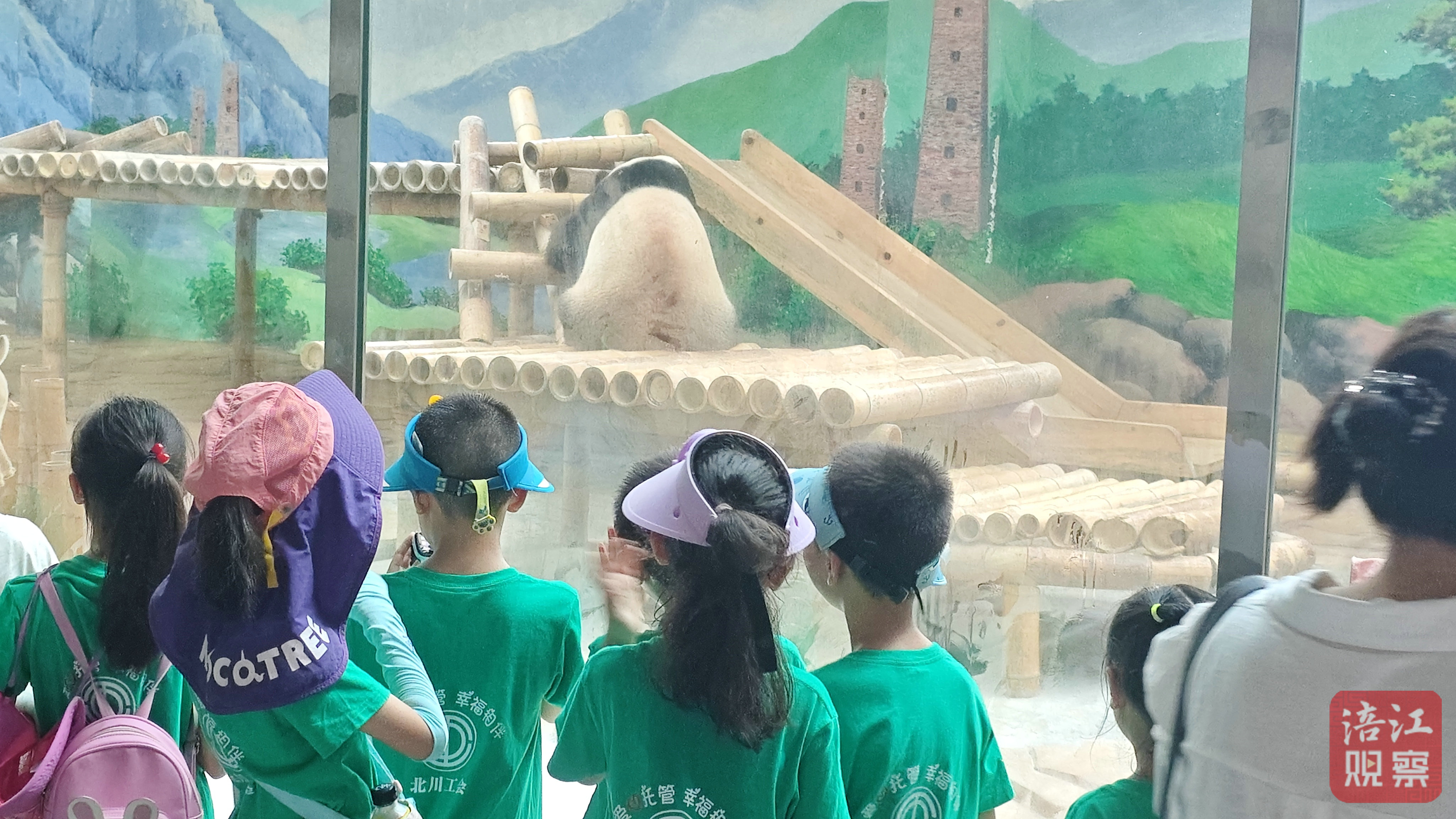 抵達園區后,憨態可掬的大熊貓率先成為焦點,它們專注啃竹、慵懶小憩的模樣吸引了孩子們的目光。小熊貓、川金絲猴以及各種鳥類也讓孩子們驚喜連連。講解員用生動的語言為孩子們講解了動物的習性和趣事,并將科學知識巧妙融入其中。