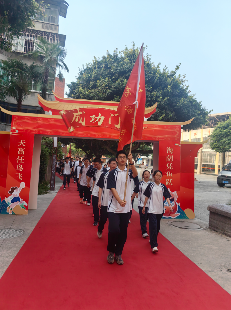 最激動(dòng)人心的環(huán)節(jié)到來!各班在班主任的帶領(lǐng)下,旗手高擎班旗,學(xué)子們步伐堅(jiān)定,依次邁過象征著奮斗與成長(zhǎng)的“高三門”。教學(xué)樓上懸掛的勵(lì)志條幅迎風(fēng)招展,這一刻,每一步都是承諾,每一秒都是誓言!