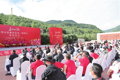 集結式上,省委宣傳部有關負責人向5支隊伍代表授旗,阿壩州委宣傳部相關負責人介紹“阿壩典范 開局突破”主題采訪活動情況,旅游推薦官發布2條阿壩紅色旅游線路和紅色研學路線,四川長征干部學院阿壩雪山草地分院教師講授紅色黨課《雪山草地鑄忠魂》。集結儀式以開場舞蹈《感恩奮進新阿壩》拉開序幕。四川省政協委員、首屆中國音樂最高獎“金鐘獎”獲得者馬薇演唱了紅色旅游主題歌《永恒的旗幟》。