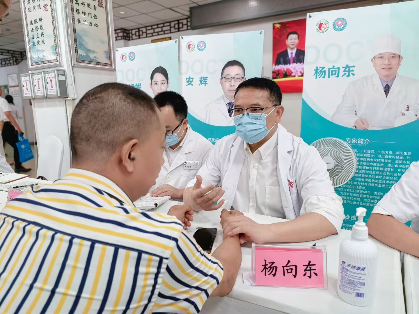 在綿陽市第八人民醫(yī)院門診大廳,楊向東和工作室專家團隊成員、成都肛腸專科醫(yī)院副院長安輝,婦女兒童肛腸科主任喬峰妮,胃腸外科主任尹同川一起,為前來就診的患者開展公益咨詢、醫(yī)療診斷、健康指導(dǎo),并就患者們關(guān)心的痔瘡、肛裂、肛瘺、肛周膿腫、便秘、結(jié)直腸炎等疾病診療耐心答疑解惑。