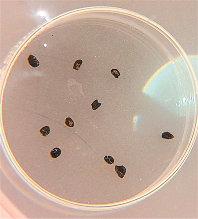 在第三單元“稻作文明”,可以看到考古出土的碳化水稻、粟、黍等植物種子和一塊古稻田遺跡標本。2020年,在寶墩遺址田角林地區,考古人員發現了4500年前的水稻田遺跡,這是成都平原乃至長江上游迄今所知最古老的水稻田。通過浮選法研究發現,碳化植物種子中稻谷的數量占一半以上,說明水稻已成為寶墩先民主要的糧食作物。