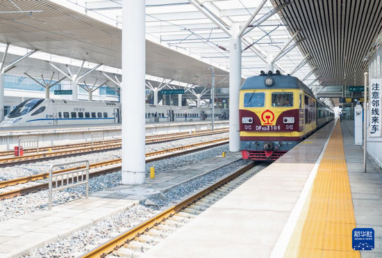 8月2日,檢測列車在進行聯調聯試作業(無人機照片)。新華社發