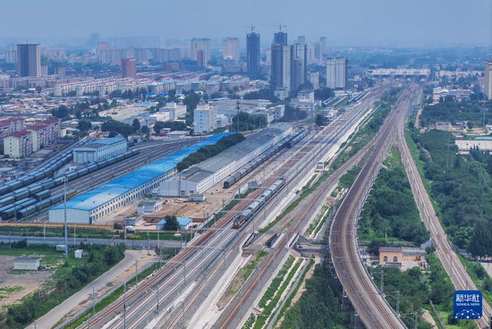 8月2日,檢測列車駛出包頭站(無人機照片)。新華社發