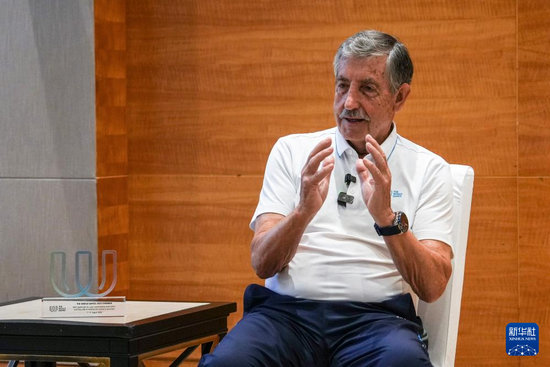 8月5日,國際世界運動會協會(IWGA)主席何塞·佩魯雷納接受專訪。 新華社記者 李博 攝