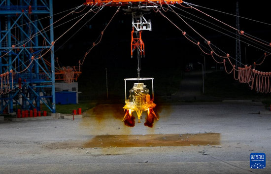 攬月月面著陸器在地外天體著陸試驗場進行測試(資料照片)。新華社發(韓慶策 攝)