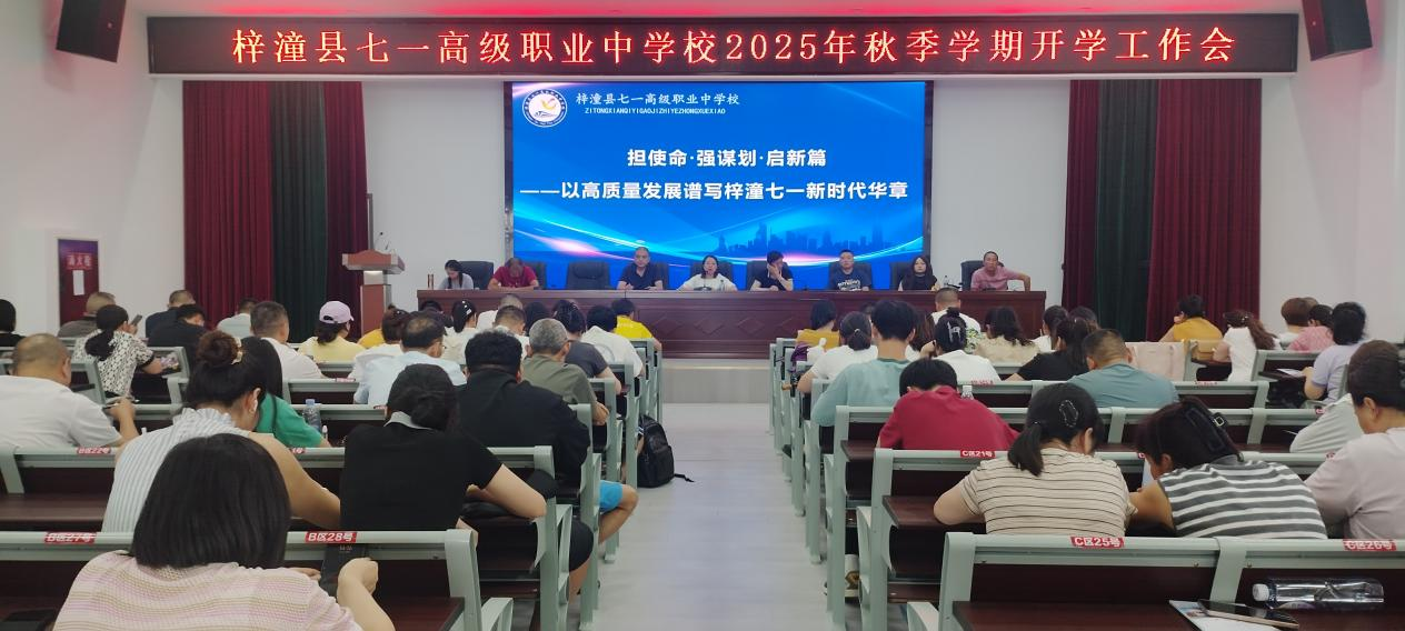 8 月 16 日,梓潼縣“七一”高級(jí)職業(yè)中學(xué)校召開了以“擔(dān)使命 強(qiáng)謀劃 啟新篇”為主題的2025年秋季學(xué)期開學(xué)工作會(huì),全面安排部署秋季學(xué)期工作及新生入學(xué)報(bào)到事宜,為新學(xué)期的開啟奠定堅(jiān)實(shí)基礎(chǔ)。