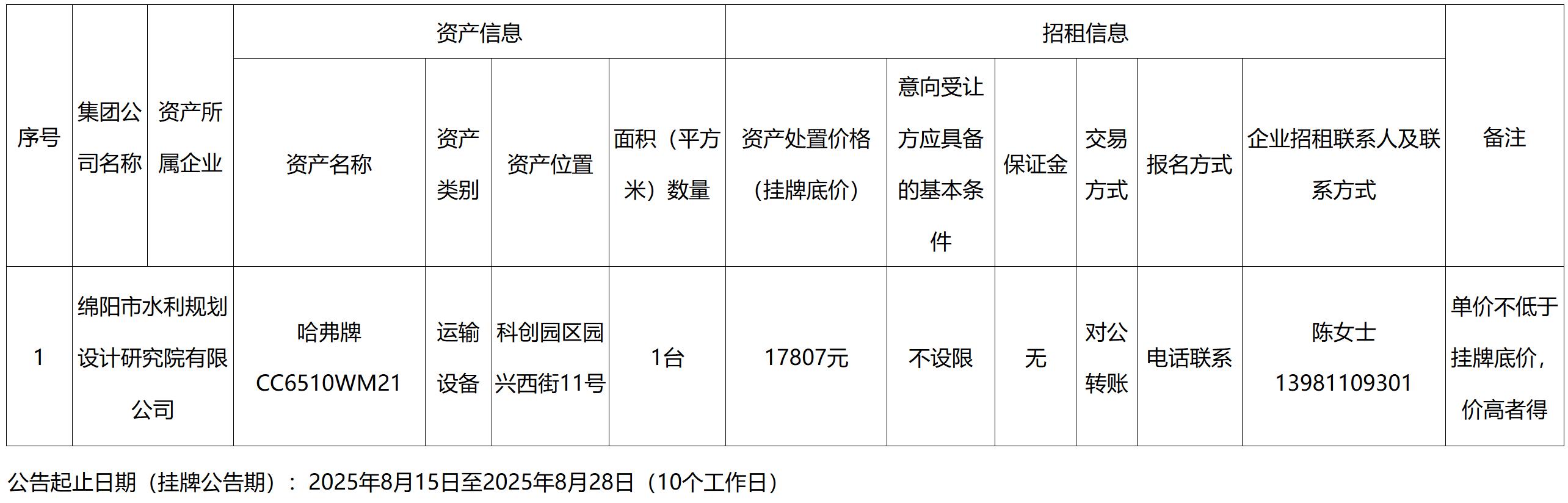 綿陽市水利規劃設計研究院有限公司2025年車輛處置項目公告