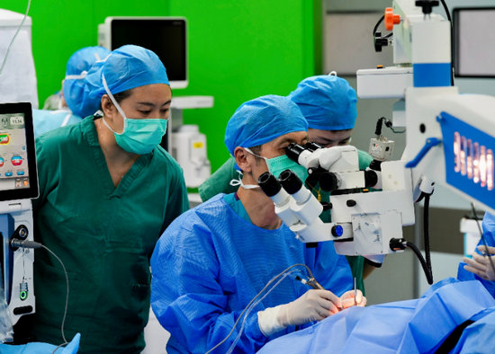 魏文斌帶領的眼科專家團隊手術及帶教現場(施術者為史翔宇教授)