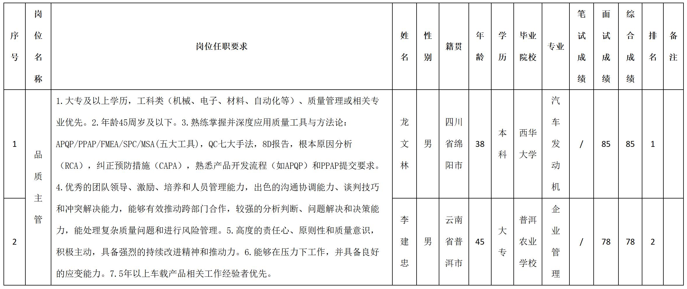 根據四川安和精密電子電器股份有限公司發布的招聘公告及招聘相關規定,經筆試、面試等程序,現將筆試(面試)成績予以公示。