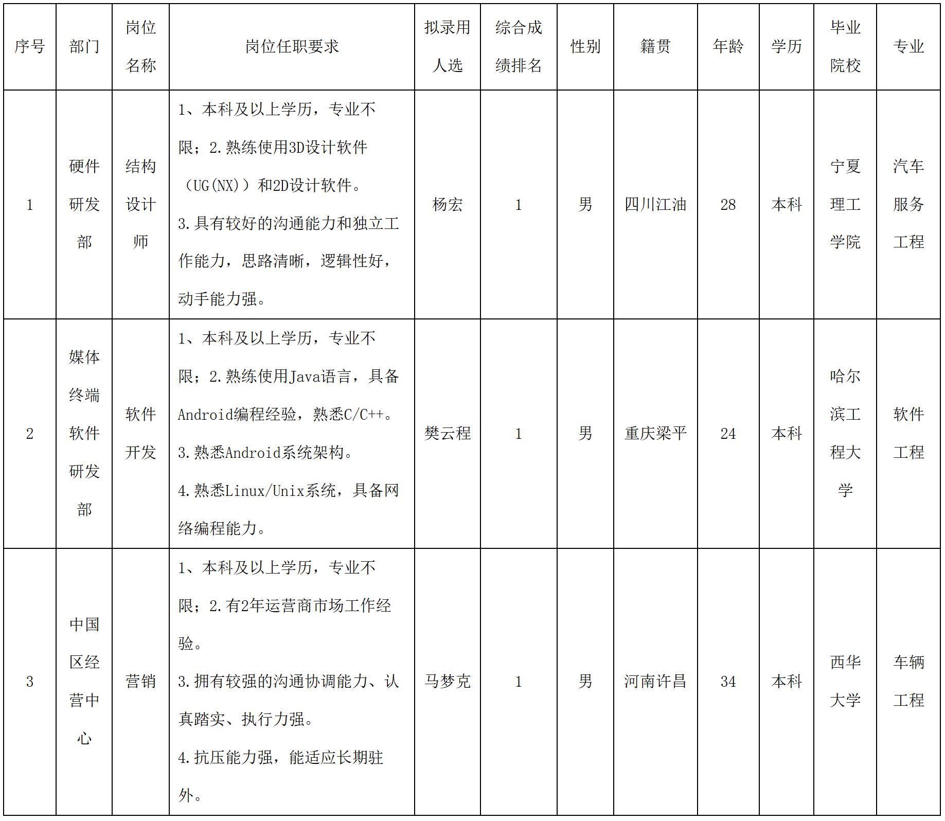 根據四川長虹新網科技有限責任公司發布的招聘公告及招聘相關規定,經筆試、面試、考察、體檢等程序,擬錄用楊宏等同志到公司工作,現予以公示,具體情況如下:
