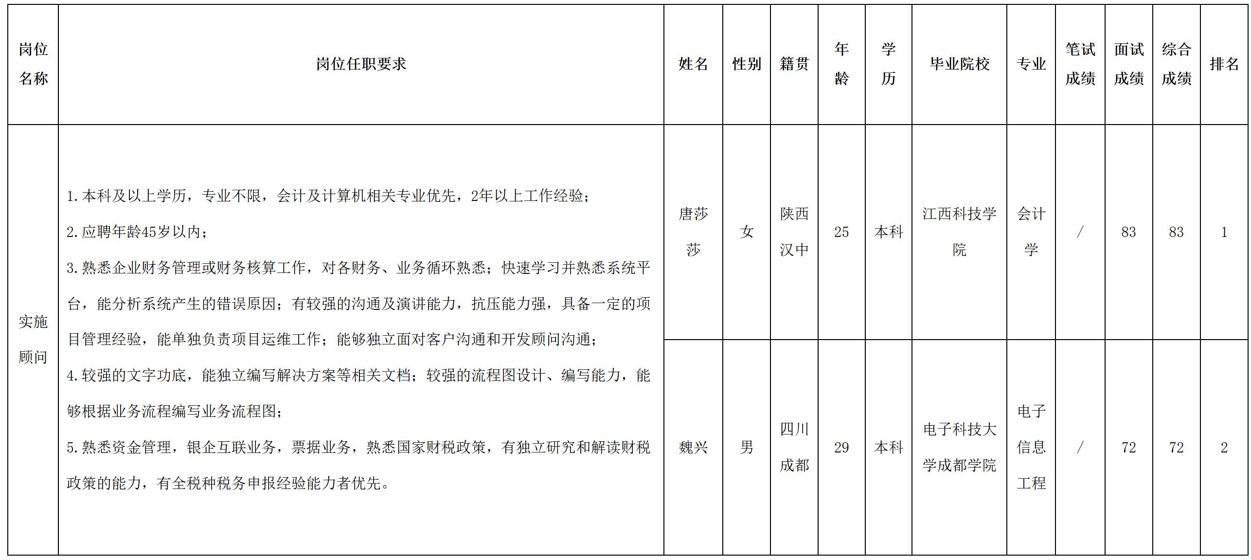 根據四川虹信軟件股份有限公司發布的招聘公告及招聘相關規定,經面試等程序,現將面試成績予以公示。